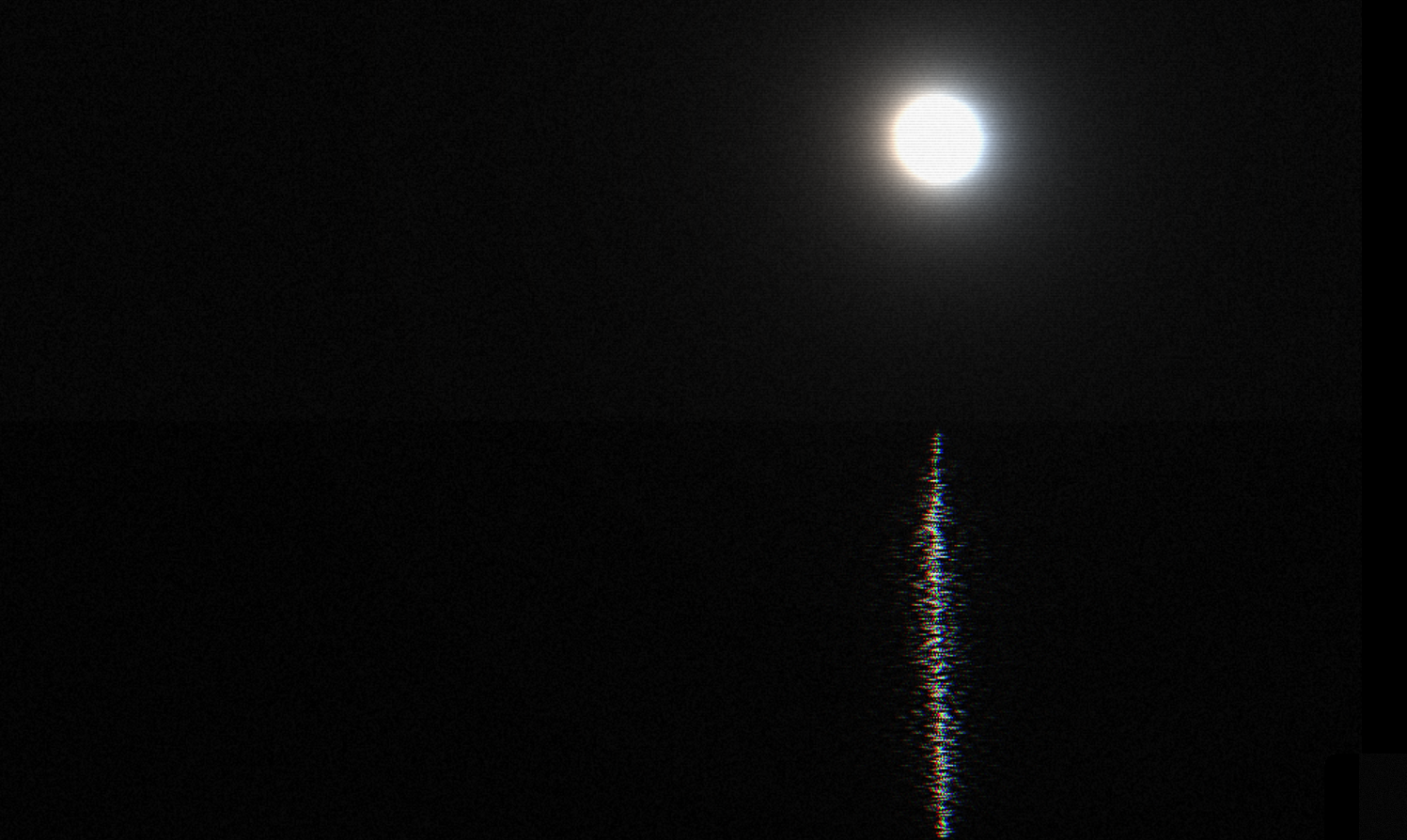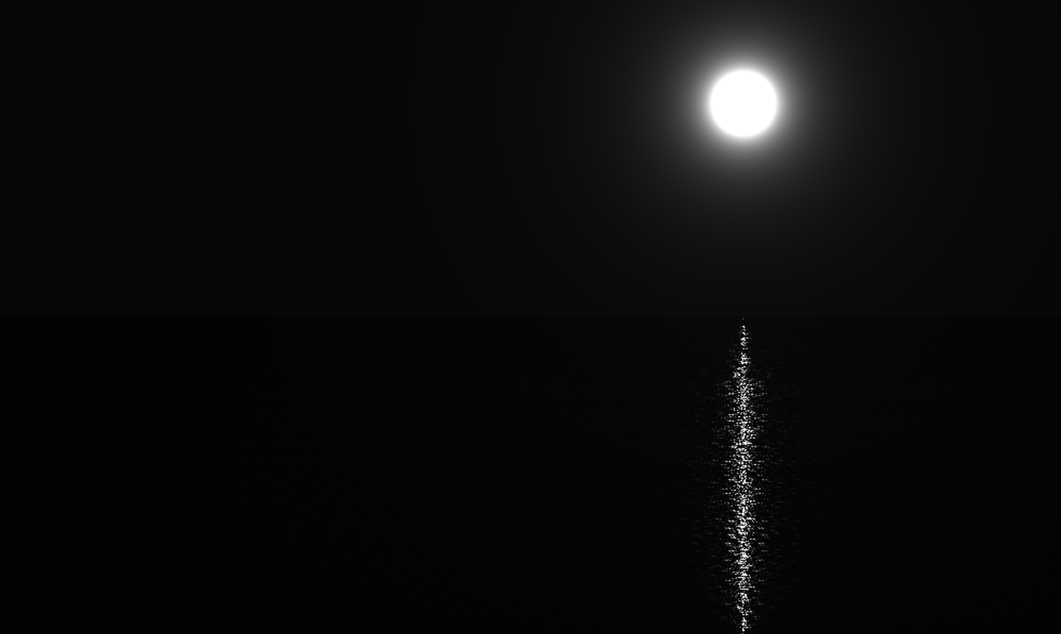 Step one is to draw a full-screen pixel shader. The background of the game, the "Moonlake", is nothing really fancy. A distance function is used to draw the moon and the glow around it, and the reflection on the sea below is based on a few harmonics time and space with a cut-off to appear only in the vertical band below the moon. The code for it is in background.ts.