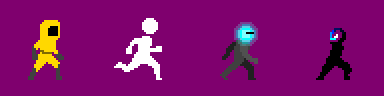 I am quite poor at drawing, but I didn't want to use ready-made sprites, so I took Zegley's 2D animated sprite template and adapted it. I chose designs that could be achieved by using the paint tool on top of the template, and copy-pasting the head, so that I wouldn't have to spend more than a few minutes for each animated character: