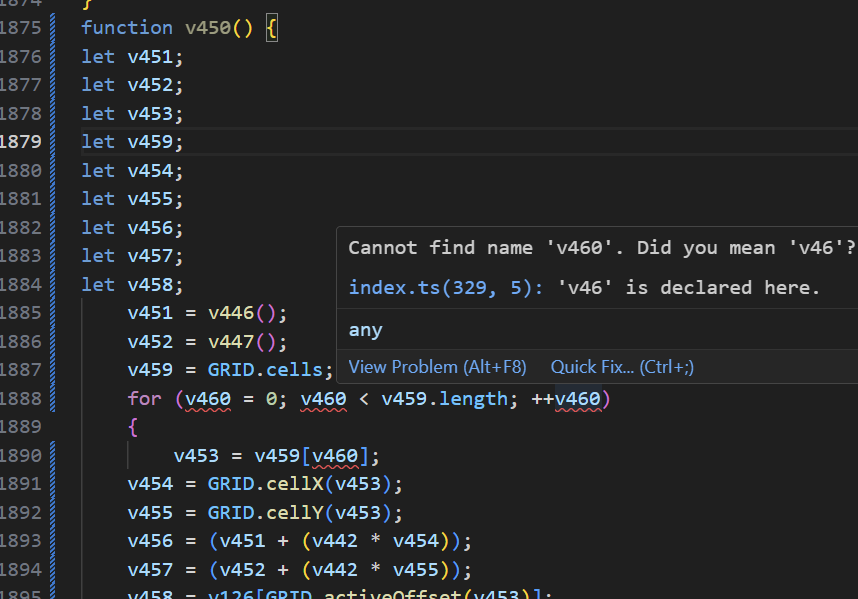 For example, using Visual Studio Code to investigate why my for (const cells of CELLS()) is broken: